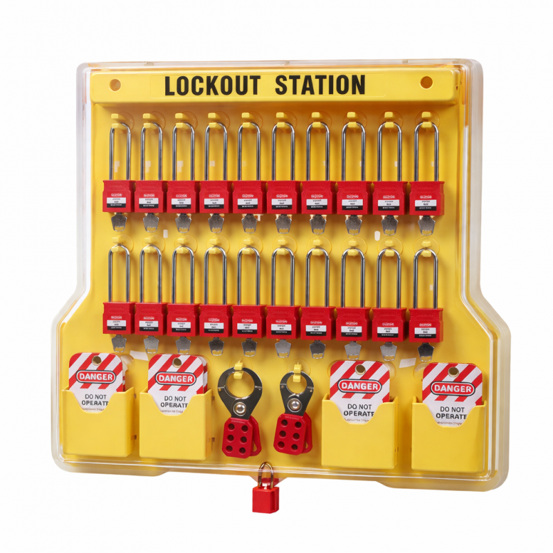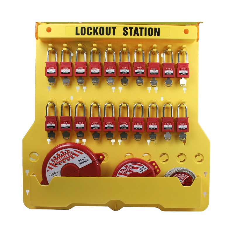 Станция для хранения на 20-40 замков с длинной дужкой PKB224, закрытая. Изготовлена из высокопрочного пластика, со створкой из оргстекла. Оснащены 2 крючками для навешивания замковых множителей и карманами для хранения информационных бирок. В станциях предусмотрены отверстия для крепления на стену.
